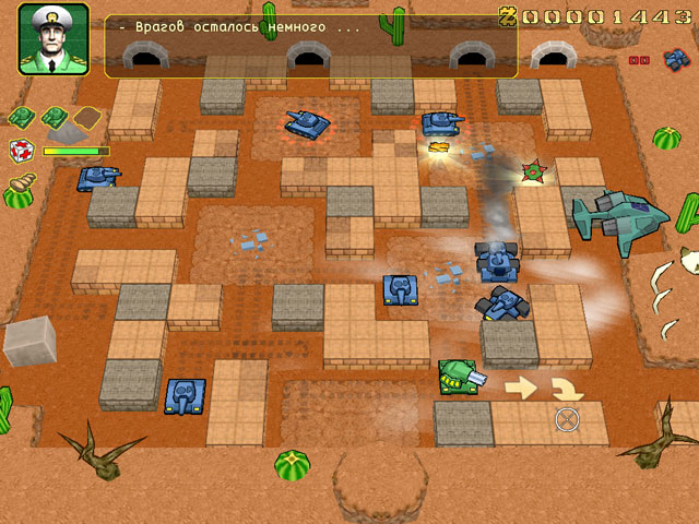 Управляйте танком и любой ценой защитите свой штаб от нападения врагов. Времени на размышление нет: противник непрерывно подтягивает подкрепления. Безжалостно уничтожайте любую вражескую бронетехнику и собирайте бонусы, которые приблизят сладкий миг победы. В перерывах между ожесточенными схватками не забудьте заглянуть в мастерскую. Там можно улучшить скорострельность и мощность оружия, оснастить свою боевую машину дополнительной броней или добавить ей подвижности. Эти улучшения обязательно пригодятся, ведь с каждым уровнем врагов будет все больше, а их техника станет все опаснее. Эта стрелялка будет интересна всем, кому по душе ответственные и опасные миссии, грохот взрывов и рев танковых моторов. Справиться со всеми врагами вам поможет множество типов дополнительного оружия и, разумеется, солдатская смекалка!