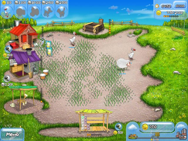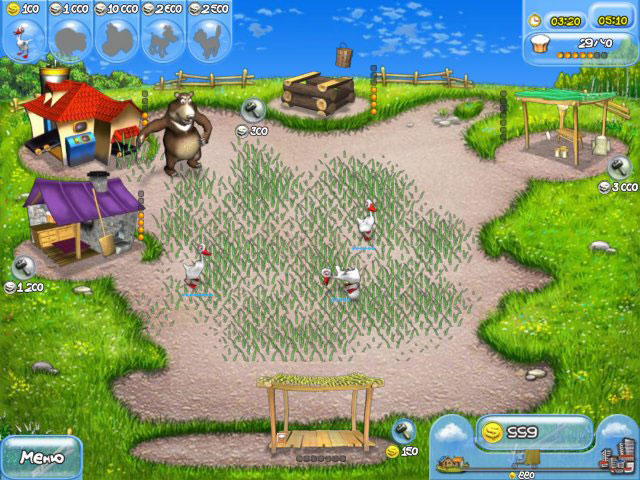 В этой веселой аркадной игре вам нужно помочь одинокому фермеру превратить чахлый хуторок в богатый и процветающий агрокомплекс со своими пекарнями, прядильнями, маслобойками и другими постройками.  Дело это непростое: нужно постоянно следить за тем, чтобы на участке росла свежая травка, которую едят гуси, овцы и коровы. Когда животные насытятся, то они смогут производить продукты. Собирайте яйца, шерсть или молоко, чтобы отправить это добро на склад, а оттуда — прямиком на городской рынок. Для прохождения каждого уровня вам необходимо выполнить определенную задачу: купить некоторое количество животных или же произвести нужное количество тортов, сыров, молока или ткани на продажу.В Веселой ферме вас ждет увлекательный игровой процесс, в котором участвуют смешные (а иногда просто уморительные!) персонажи. Забавные животные обязательно понравятся детям, а взрослые по достоинству оценят динамику игры, благодаря которой любой желающий сможет освоить тонкости управления собственным хозяйством.